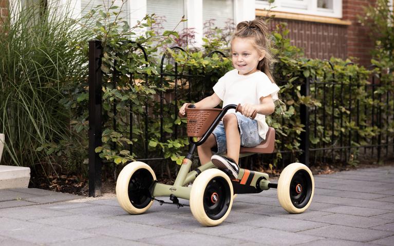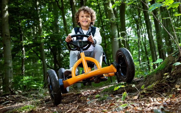 Le Direct Drive est particulièrement adapté au groupe cible des plus jeunes. Nous l'utilisons donc sur les go-karts destinés à un groupe cible plus jeune, notamment le Buzzy et le Reppy. Il s'agit d'un entraînement dans lequel une chaîne relie directement l'axe de pédalier à l'essieu arrière. Autrement dit, lorsque le go-kart se déplace, les pédales bougent toujours avec lui et vous pouvez freiner en maintenant les pédales immobiles. Il s'agit d'une méthode très simple pour apprendre à pédaler ; en effet, les enfants peuvent la comprendre facilement. Par conséquent, c'est également le véhicule idéal pour les jeunes enfants.