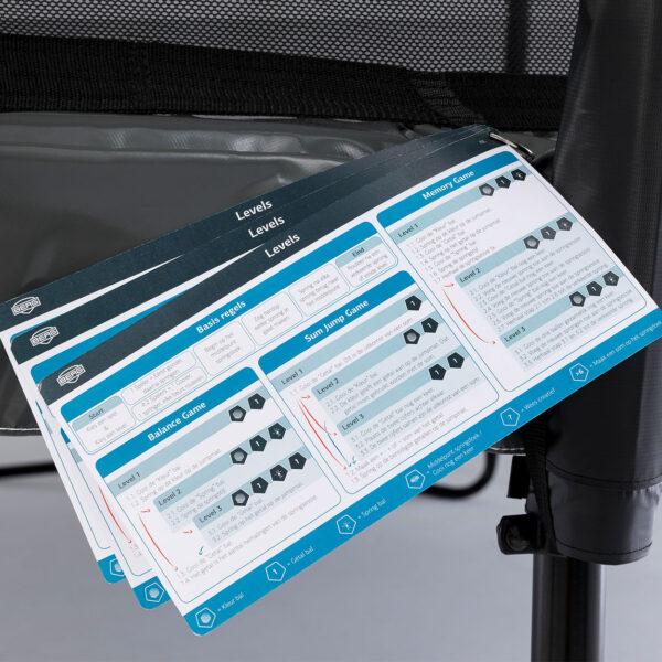 BERG hat zusammen mit Grundschullehrern ein Spiel für Trampoline entwickelt. BERG Levels ist ein innovatives Spiel, das Kinder anregt, auf angenehme Weise zu lernen und sich zu entwickeln. Das Levels-Spiel können Kinder zusammen oder allein spielen und damit ihre Sprungtechnik und ihre mathematischen Fähigkeiten verbessern sowie ihr Gedächtnis trainieren. Die „Levels“ reichen von interessanten Basisspielen bis hin zu körperlich und geistig anspruchsvollen Übungen. BERG Levels-Trampoline sind mit einem großen Sprungtuch mit farbigen Symbolen, drei weichen Spielbällen und Spielanleitungskarten in sechs Sprachen ausgestattet. Ein fröhliches und aktives Spiel für jeden Garten.