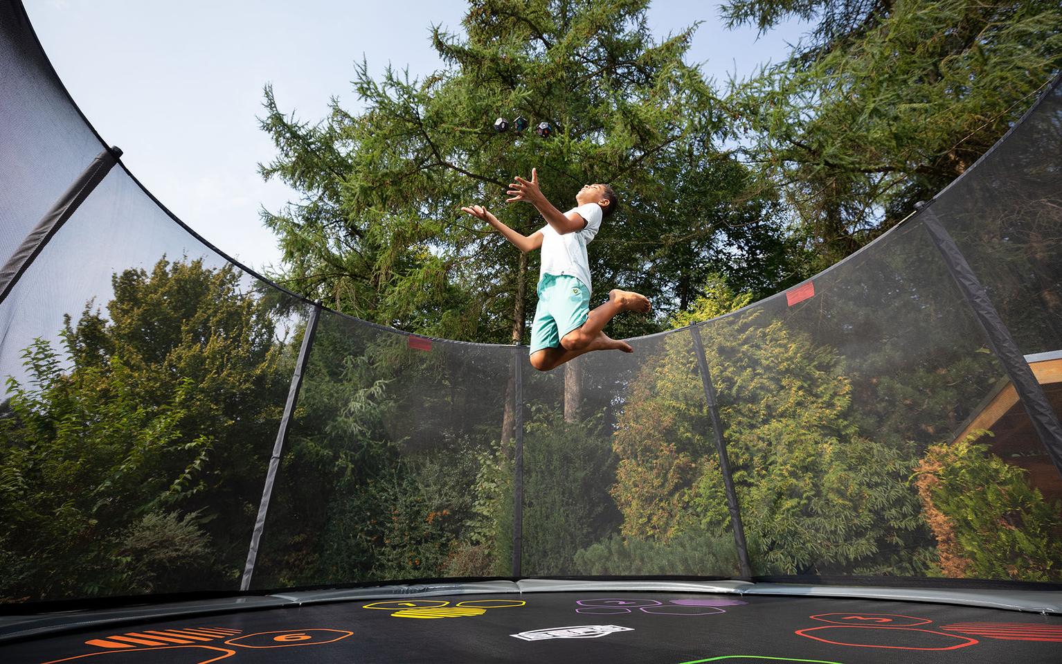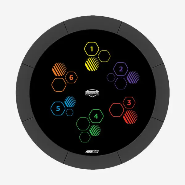 Das BERG Levels-Trampolin hat ein Sprungtuch mit einem besonderen Aufdruck. Durch den farbenfrohen Aufdruck auf dem Sprungtuch und die Spielbälle erhält das Trampolin eine spielerische Ausstrahlung.