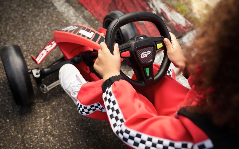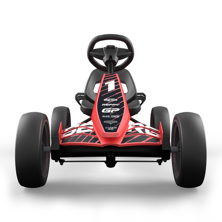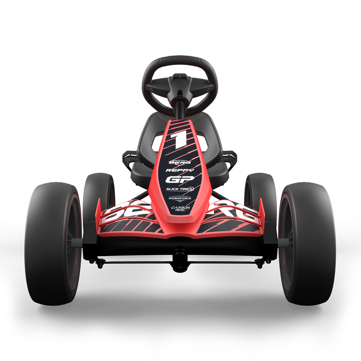 Det karakteristiske sporty rat, punkterfrie EVA-dæk, det seje skålformede sæde og svingaksel gør gokartkørsel meget sjovt. Med sit lave skålformede sæde er BERG Reppy den første gokart til små børn med ægte, lav gokart-indstigning. Når børn tager en tur på fortovet med Reppy, vil alle øjne være rettet mod dem. Med BERG Soundbox vil alle høre, når dit barn starter motoren, accelererer eller bremser!