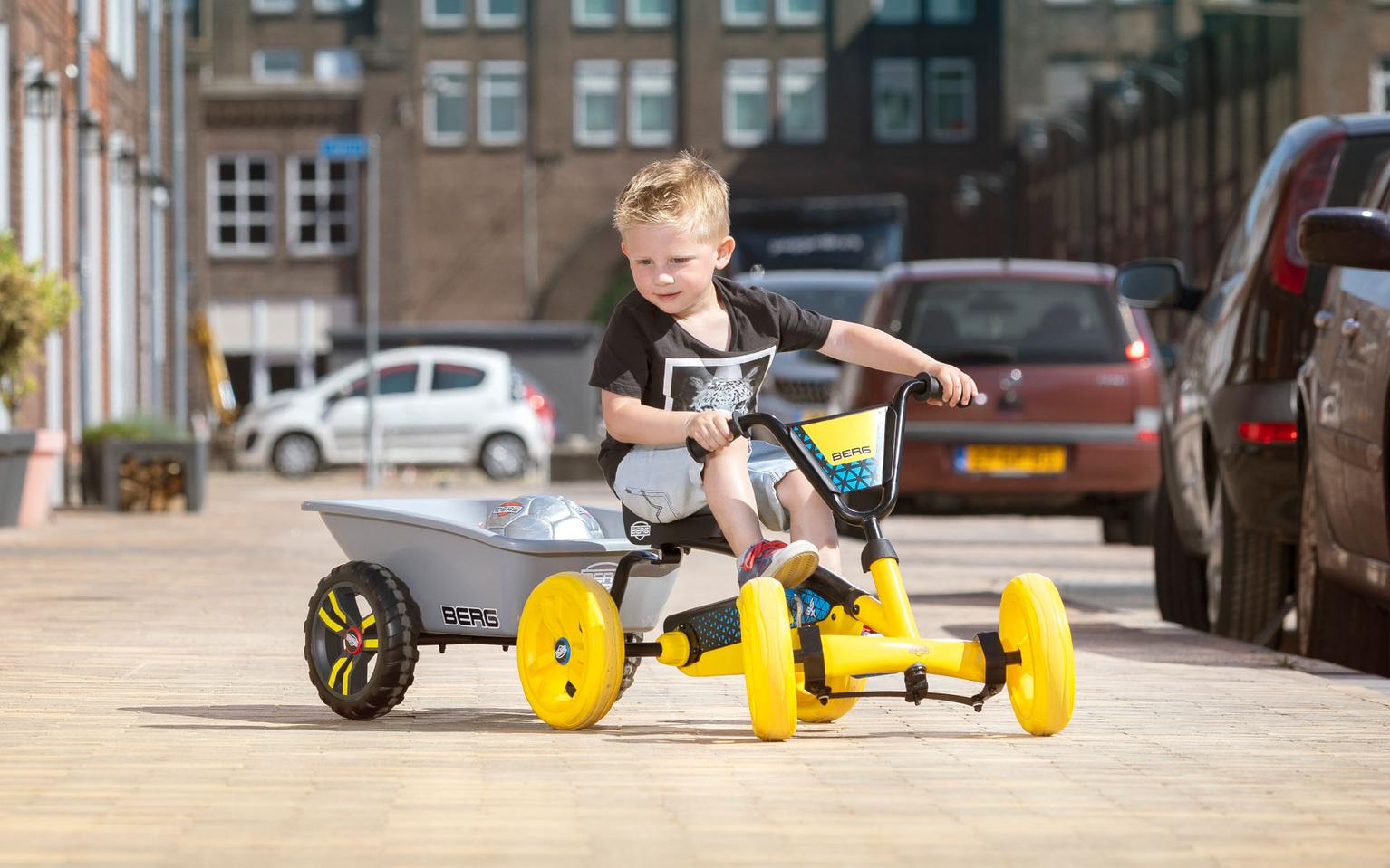 Vil du fuldende din BERG Buzzy? Så anbefaler vi denne BERG Buzzy-anhænger, der gør det nemt at tage dine ting med på tur. Denne anhænger gør det endnu sjovere at lege udenfor! Smid en picnickurv, legetøj eller anden last i anhængeren, og fuldend eventyret. Anhængeren kobles til din Buzzy med det medfølgende anhængertræk. Det er let som en leg! De medfølgende hjulklistermærker sikrer, at anhængeren og din Buzzy passer perfekt sammen. Denne BERG Buzzy-anhænger kan bruges sammen med alle BERG Buzzy-gokarts.