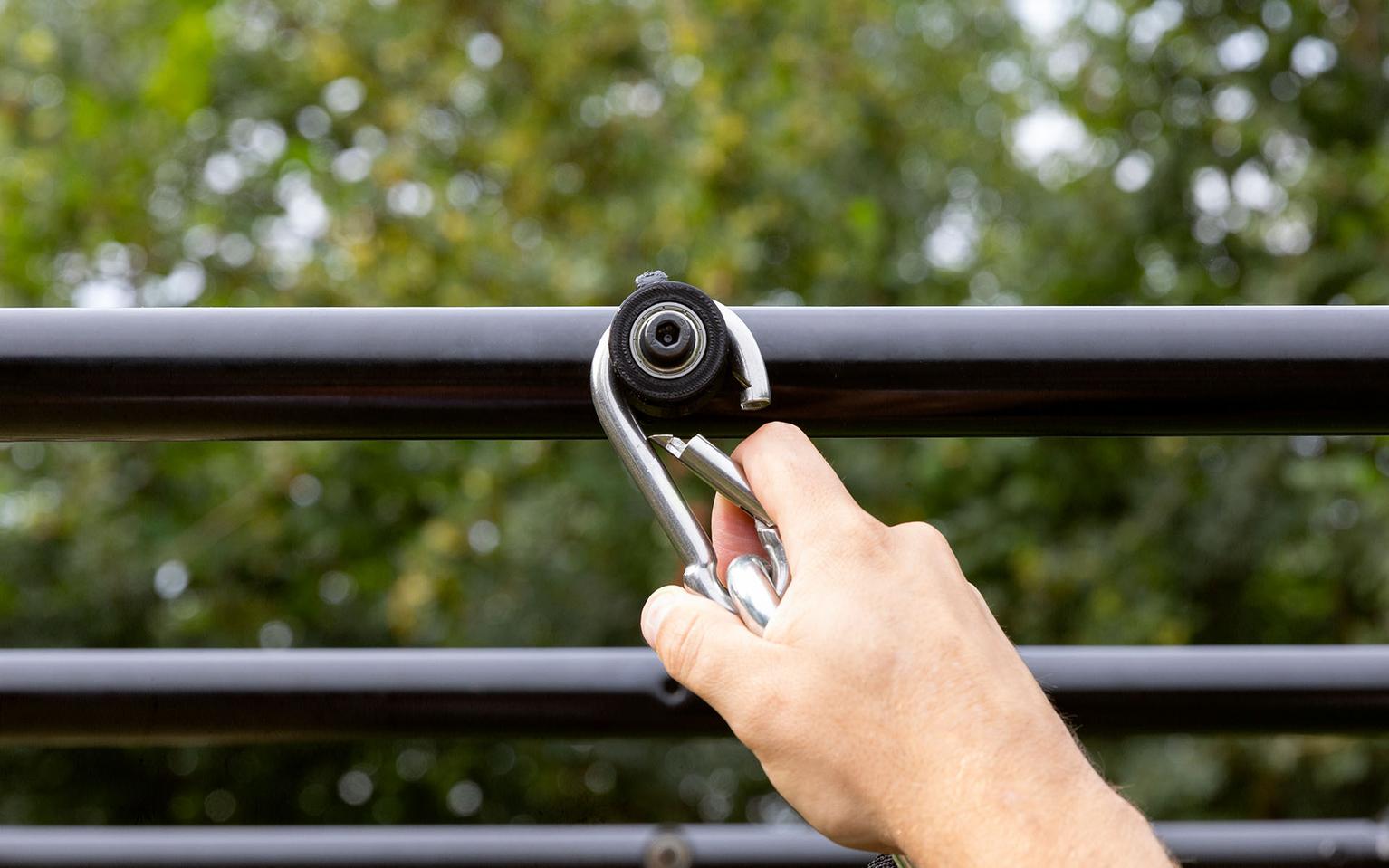 Remarque : les mousquetons ne sont pas inclus avec cet accessoire vendu séparément. Ils sont fournis en standard avec une BERG PlayBase ou peuvent être commandés séparément ici.