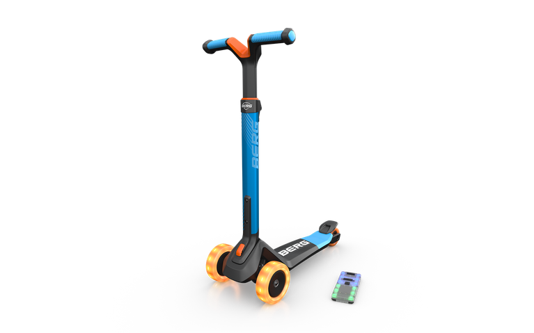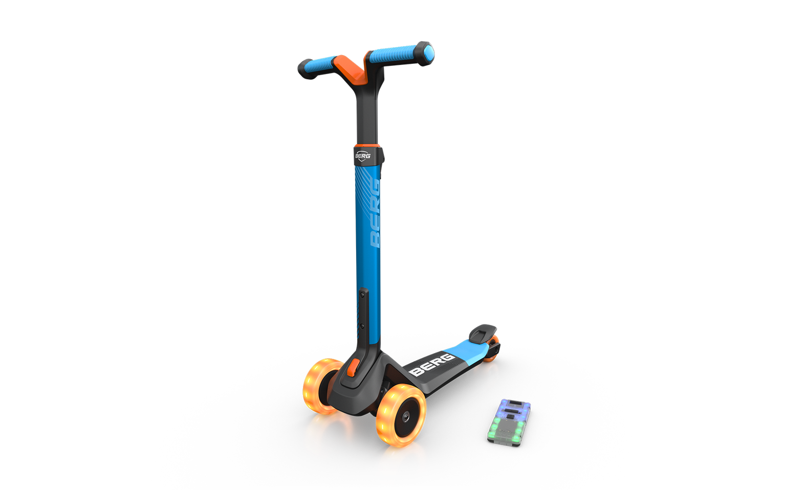If your child loves to scoot, choose the BERG Nexo children's scooter. The scooter is steered by leaning. The Nexo has a sleek design and three wheels for extra stability. With extra firm grip on the handles and footboard, and an ergonomic foot brake, children are sure to ride safely. And children will light up any space with the cool LED lights in the wheels! Simply fold the Nexo scooter up and take it with you, or pull it behind you with the handle. And if you want, there are additional options and accessories available for the Nexo.