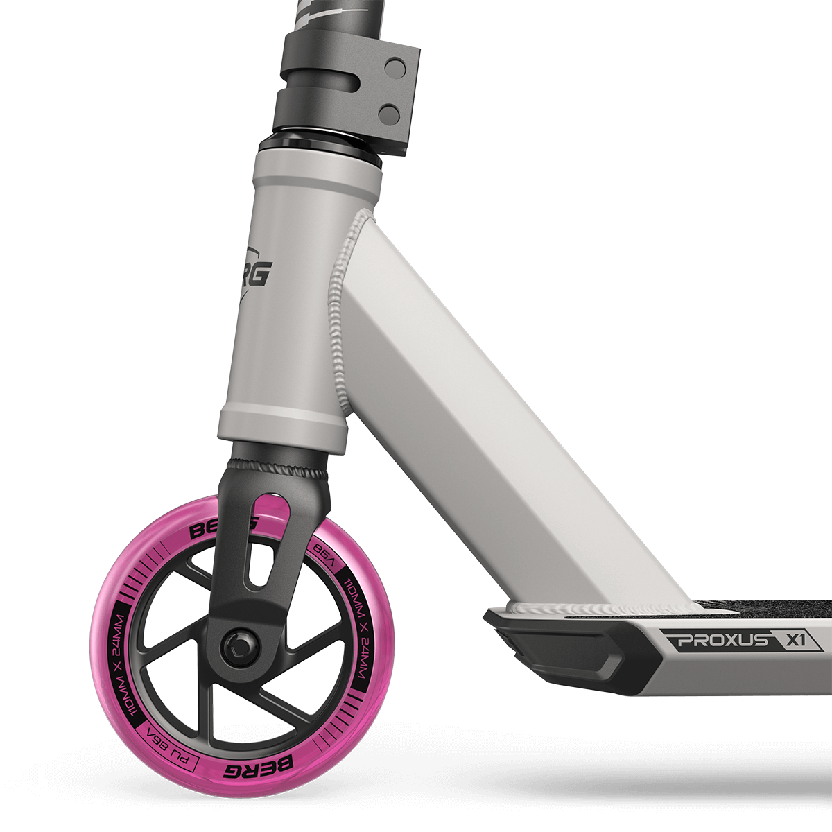 The BERG Proxus X1 is the stunt scooter for young riders who wants to keep developing. This stunt scooter ensures that you can keep improving your skills and become a real pro. The Proxus X1 is built with high-quality materials that last a long time, that way you can perfect your tricks over and over again. All specific parts are geared to each other and that makes it easy for you to get off the ground and stay in control at all times. With its low overall weight, the Proxus X1 is perfectly rideable and ideal for more advanced stunts. Whether you want to ride around town or enjoy going to a skatepark, this is the stunt scooter for the pros-to-be.
