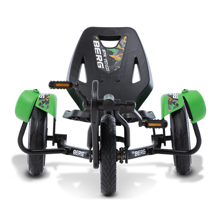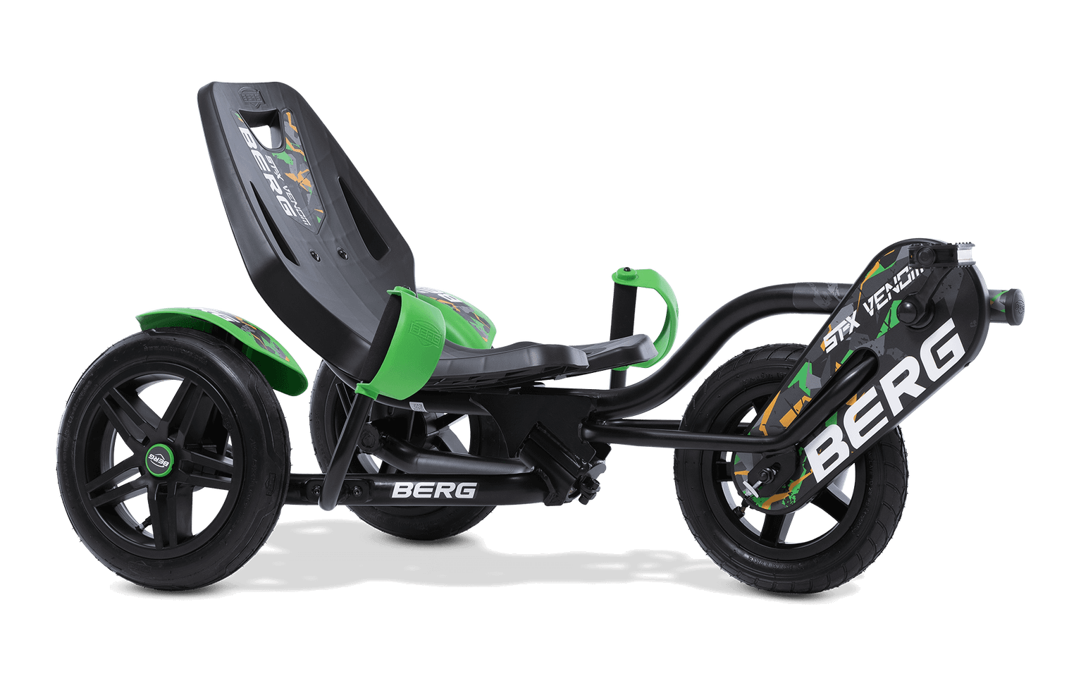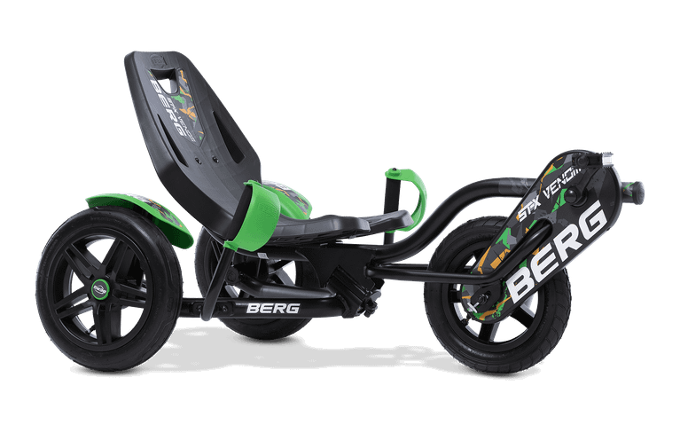 The new Street-X trike comes in two versions: the Venom and the Vibes. Whichever one you choose, both of them have the same features. For example, the BFR system, which allows you to brake with your pedals and instantly reverse. This makes it super maneuverable! The green Street-X Venom trike and blue Street-X Vibes trike are available for children ages six and older. And the adjustable bucket seat and strong steel frame allow children to cruise on them until they're about twelve years old. Are you ready to do your stunts?