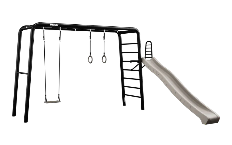 Turn your garden into a play paradise with the BERG PlayBase! This premium climbing frame combines play, exercise, and lounging in one. Its minimalist design fits perfectly into any garden and stands firmly without the need for concrete. The BERG PlayBase is more than just outdoor play equipment; it’s an adventurous meeting spot for the whole family. Choose from a wide range of accessories, such as a swing, climbing wall, and hammock, to create your own unique play area. Enjoy hours of outdoor fun and relaxation with this durable and versatile climbing frame. The BERG PlayBase is the ideal choice for families who value quality and fun in their own garden!