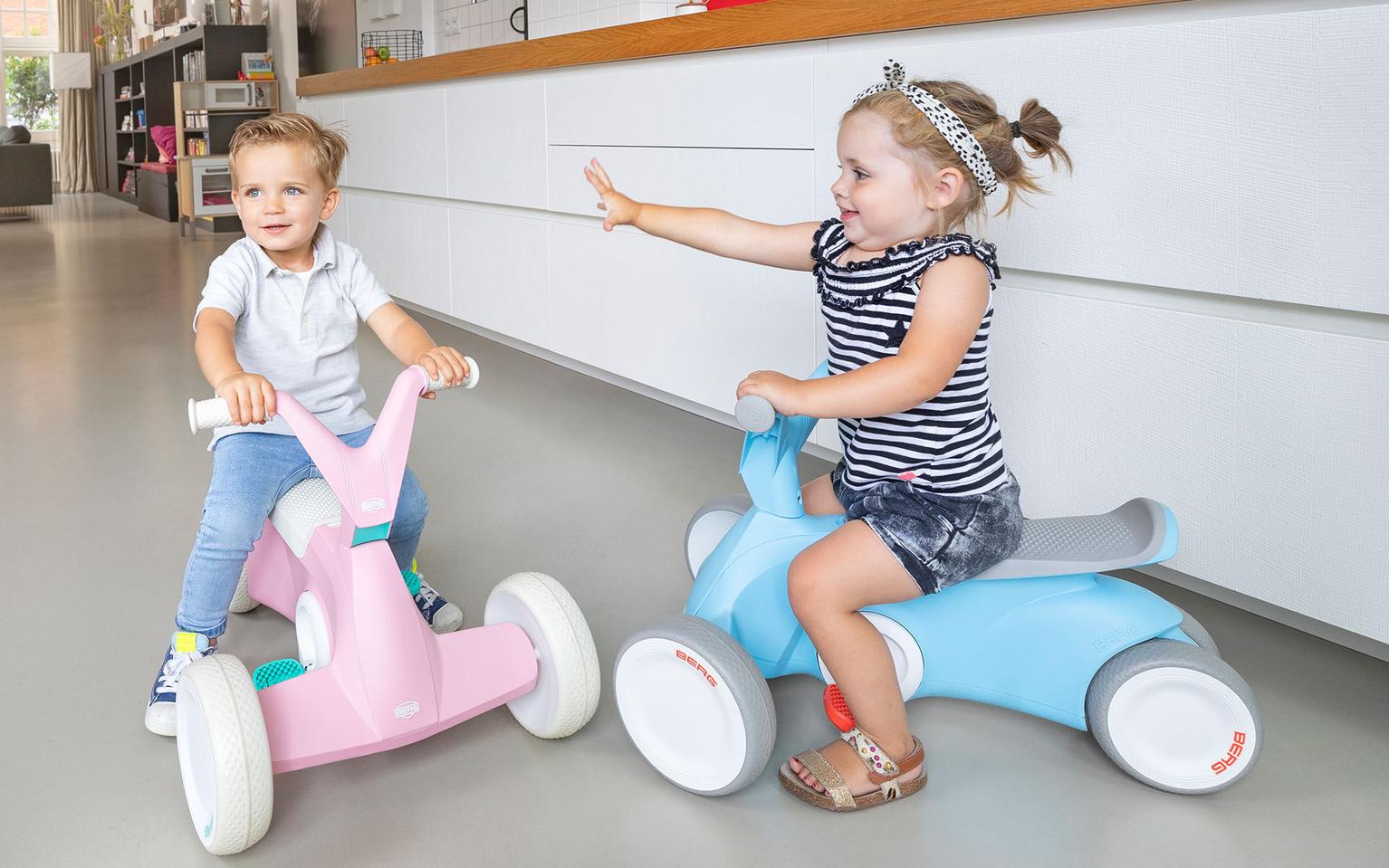 It's never too early for children to start developing their motor skills. BERG helps children do exactly that with the award-winning BERG GO2 walking car. From the age of ten months, children can get out and about on this unique combination of walking car and pedal car. This is convenient, because once children have mastered scooting with the GO2, they can immediately move on to learning to how to pedal. Children can use the BERG GO2 indoors and outdoors. The compact model steers easily around chairs and tables.