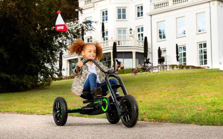 Con el kart BERG Buddy, te convertirás en la estrella del barrio. Te sentarás cómodamente en el espacioso asiento tipo cubo, mientras el volante te ofrece un agarre perfecto. Además, el volante está preparado para la BERG Soundbox, que viene de serie en los modelos BERG Buddy Cross. Elijas la versión que elijas, con el Buddy, ¡sin duda serás el corredor más genial de la calle!