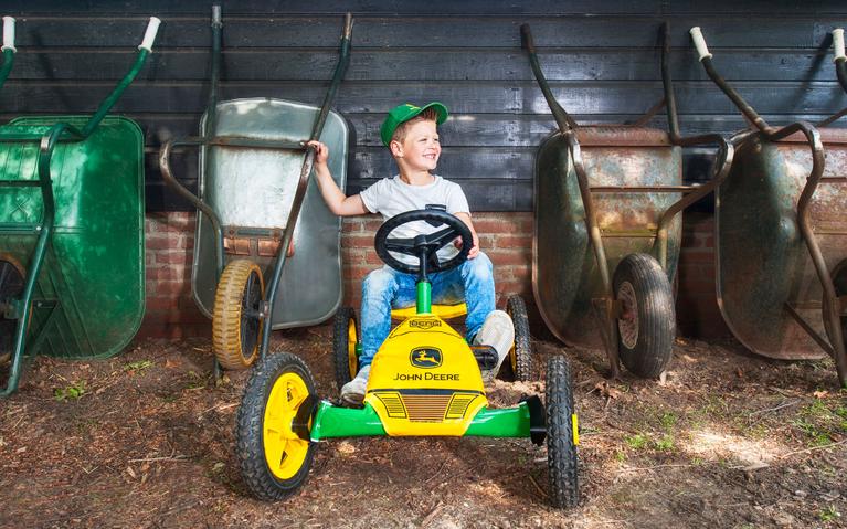 El Buddy de BERG tiene una increíble estabilidad gracias a sus cuatro ruedas, y también está equipado con un eje basculante. Esto permite que las ruedas delanteras se muevan ligeramente hacia arriba y hacia abajo para amortiguar cualquier irregularidad en el suelo.