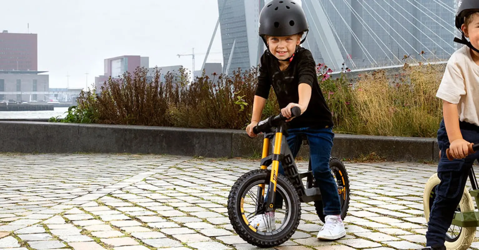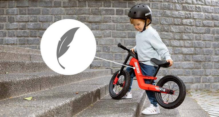 Las bicicletas de equilibrio BERG ofrecen una seguridad extra en varias áreas. Esto se debe en parte a la limitación de dirección, que puede configurarse según la experiencia del niño. Cuanta más experiencia tenga el/la niño/a, más podrá girar el manillar. El material del que esté hecha la bicicleta de equilibrio también es importante. La bicicleta de equilibrio BERG Biky tiene un marco de magnesio, y la BERG MOOV 10 un marco de acero ligero, ambos increíblemente ligeros, resistentes y duraderos. Esto le da al niño un control óptimo sobre la bicicleta de equilibrio. Esto contrasta con un marco pesado, que en relación con el peso corporal del niño a veces puede ser desproporcionado. Al principio, los niños a menudo siguen frenando con los pies de forma intuitiva, y eso está bien a velocidades más bajas. Para una mayor seguridad, los modelos también están disponibles con un freno de mano, de modo que, incluso a velocidades más altas, la bicicleta de equilibrio pueda detenerse rápidamente. Además, los puños de agarre suave, el sillín de piel ajustable en altura y los reposapiés integrados aumentan aún más la seguridad de las bicicletas de equilibrio BERG. Por último, sigue existiendo la opción de añadir una bandera de seguridad y un casco a tu Biky o MOOV 10. El casco puede ser recomendable si tu hijo ya está alcanzando altas velocidades en la bicicleta de equilibrio. Esto garantiza una seguridad óptima mientras juega.