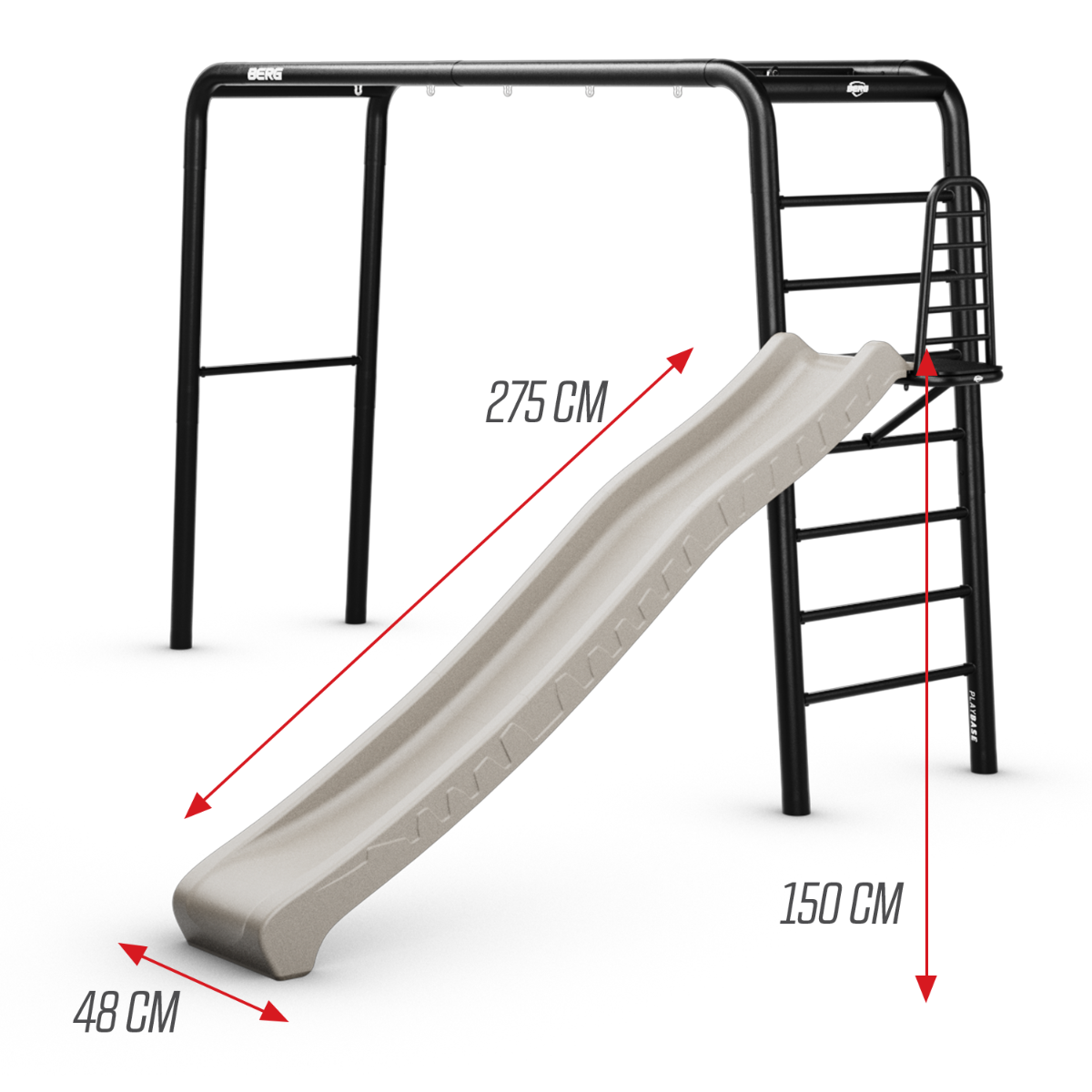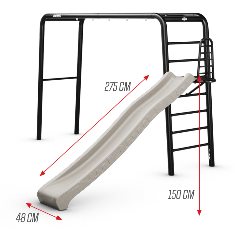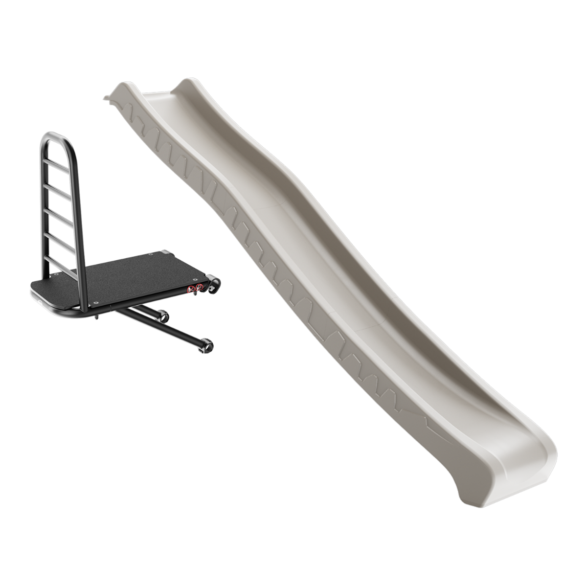 In de warme zomermaanden halen kinderen nog meer plezier uit de glijbaan, doordat de tuinslang kan worden gekoppeld aan de glijbaan! Tijd om het maximale uit jouw PlayBase speelervaring te halen! Let op: deze glijbaan met platform is niet geschikt voor montage op het BERG PlayBase Wall frame.