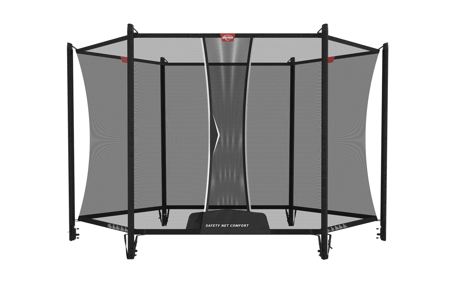 Trampolinespringen is fantastisch om te doen, maar wat als je toch een keertje valt? Met een BERG Safety Net Comfort zit je goed! Het net is speciaal ontworpen voor BERG trampolines en is makkelijk en stevig op het frame te bevestigen. Met zijn hoogwaardige materialen en stevige constructie biedt het optimale veiligheid en gemoedsrust voor als je een keer verkeerd landt. Je kunt de trampoline veilig betreden, zonder rits sluiting. Dit maakt het net niet alleen veiliger, maar het gaat zo ook langer mee. *De BERG Safety Net Comfort 330 (6 palen) is alleen geschikt voor het huidige BERG Favorit assortiment.