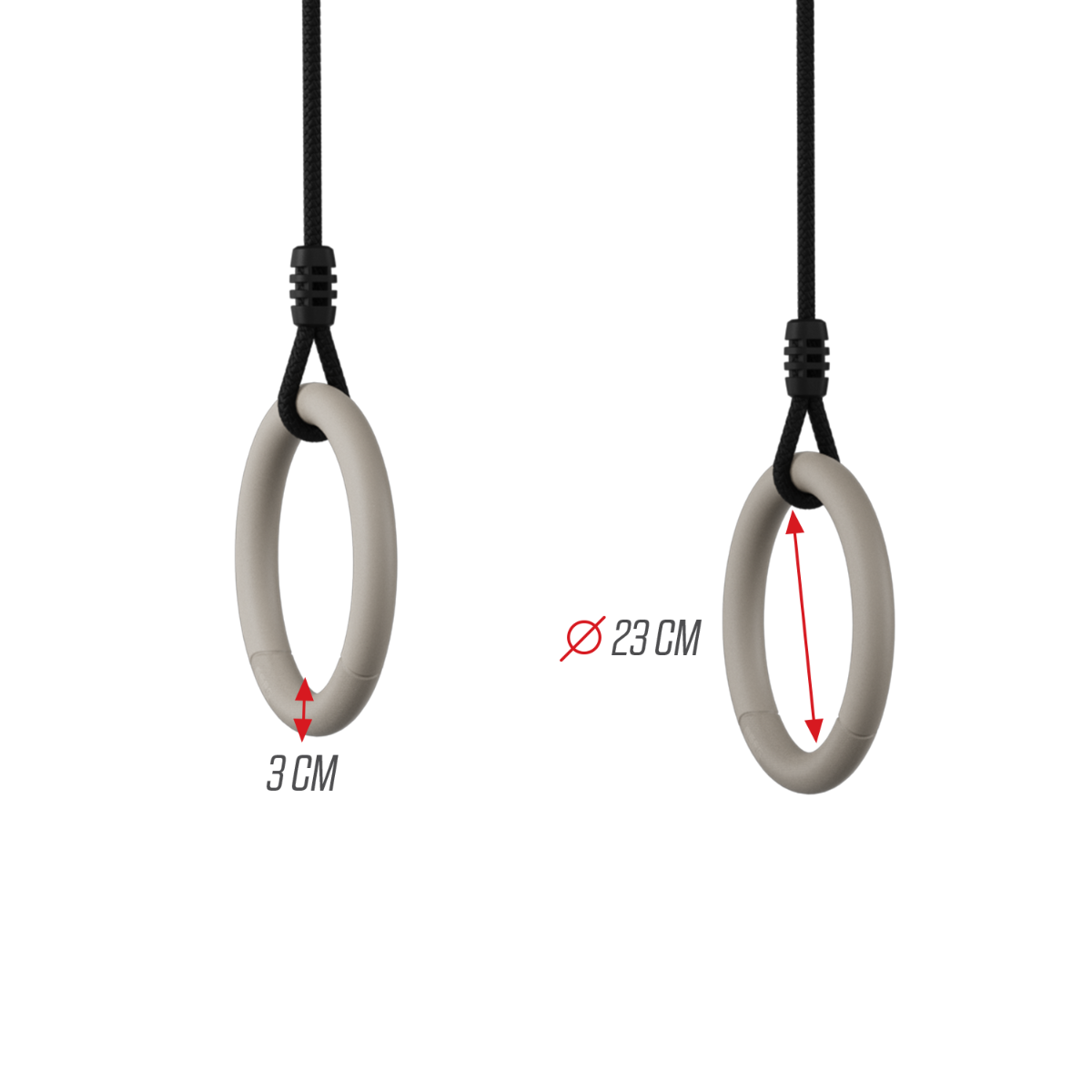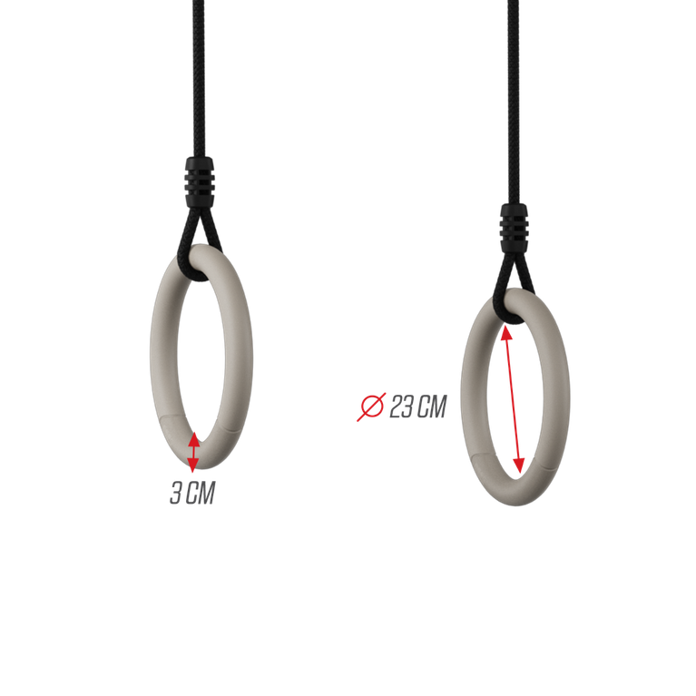 Slingeren, zwaaien of koprollen? Met de BERG Turnringen haal je nog meer speelplezier uit jouw PlayBase. Je bevestigt de ringen eenvoudig aan jouw PlayBase frame met de karabijnhaken. Of je nu turnskills wilt verbeteren of oneindig wil zwaaien schommelen, met deze turnringen raak je maar niet uitgespeeld. Ook gaat de moderne grijze kleur van de ringen perfect op in jouw tuin. Heb je al een ander speeltoestel? Ook dan kun je kiezen voor de schommels van BERG!