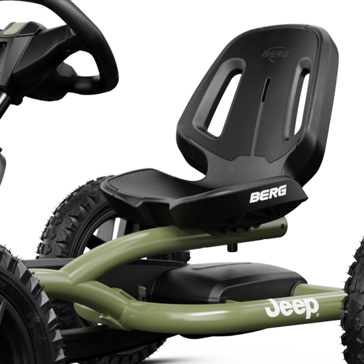 Om jaren speelplezier te hebben met de BERG Buddy, is het mogelijk om de stoel te verzetten. Het stoeltje kan in drie verschillende standen worden versteld, zodat je altijd bij de trappers kan komen.