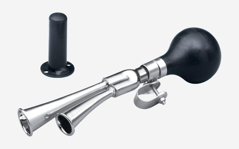 Et herlig tilbehør til tråsykkelen din: BERG horn med 2 toner. Et nydelig forkrommet totoners horn. Trykk på den sorte pæren og la alle få vite at du kommer! Passer til alle XL gokarts fra BERG (BFR, BFR-3, XXL-BFR og E-BFR).