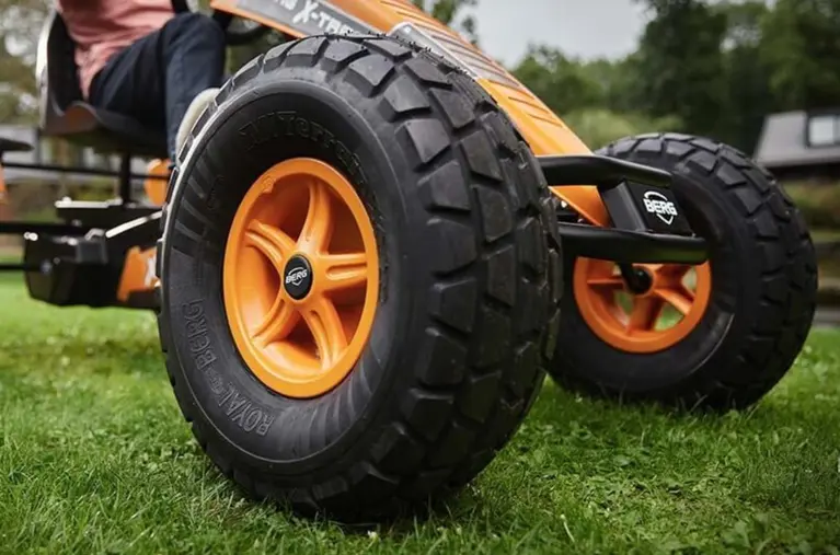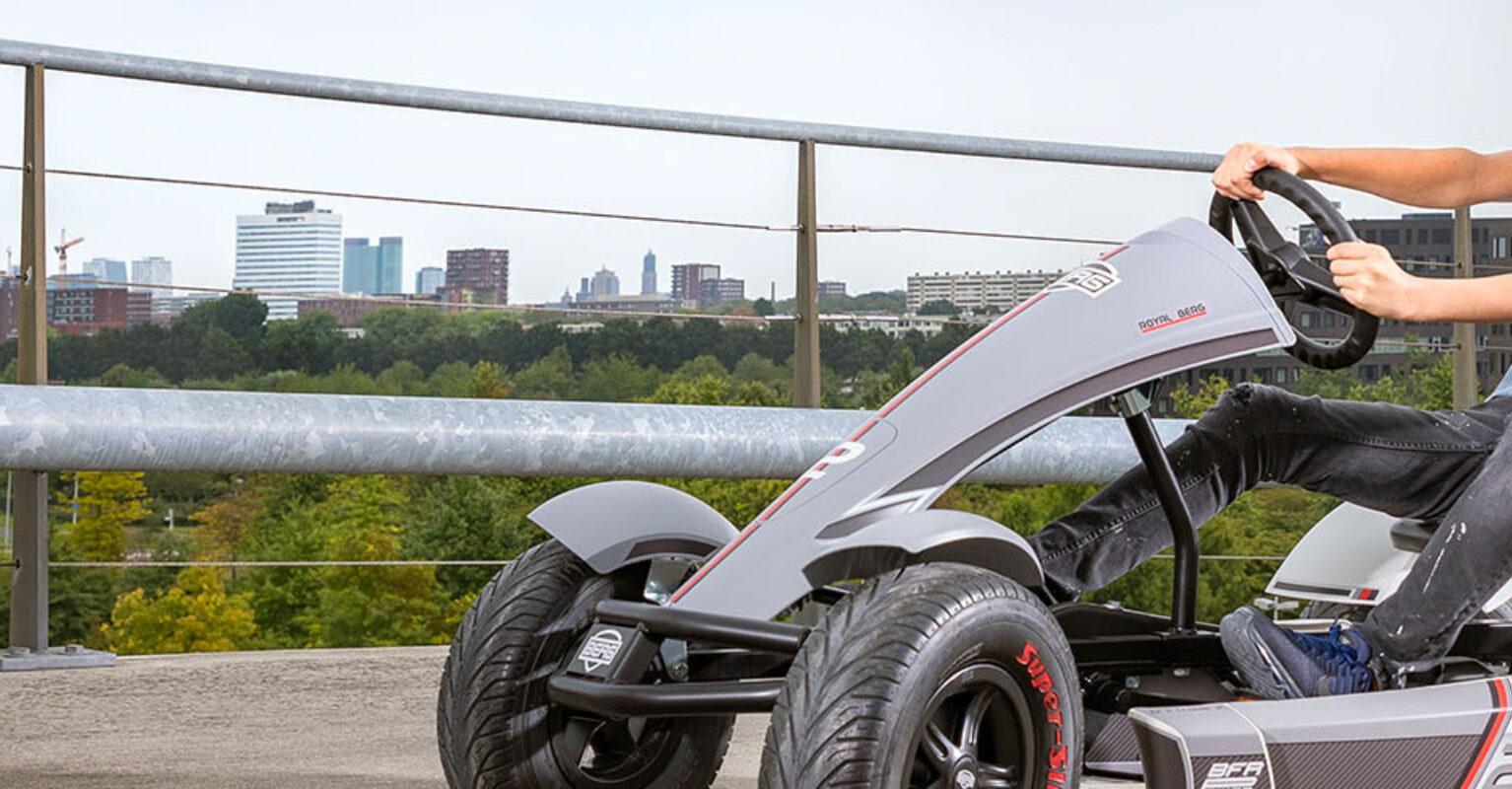 BFR (Brake Freewheel Reverse) är ett unikt och patenterat system mellan kedja och bakaxel, speciellt utvecklat för våra BERG gokarts. Detta system låter användaren trampa, hålla pedalerna stilla under åkturen, använda en pedalbroms och att trampa bakåt när gokarten har saktat in. Denna unika kombination av funktioner, som endast finns på gokarts från BERG, är perfekt för snabbt trampande framåt, trampande bakåt och inbromsning.